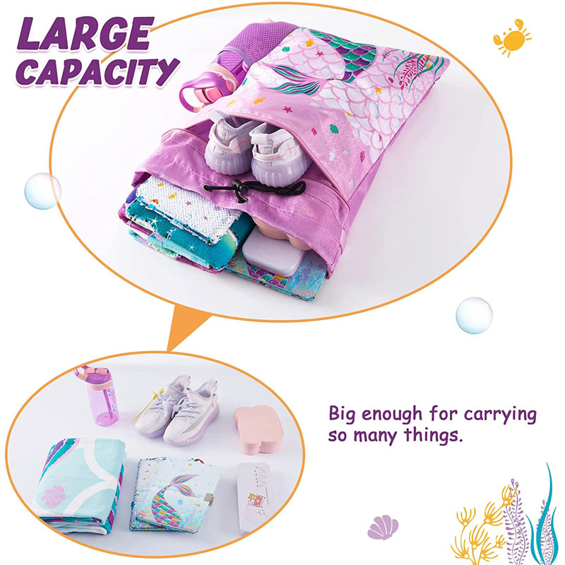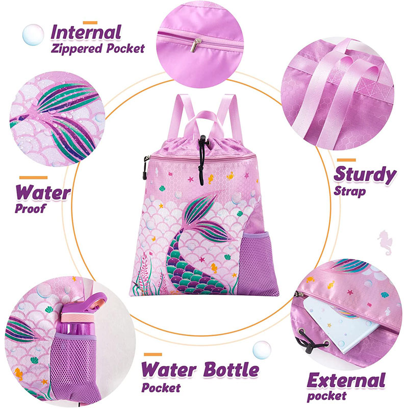· 【АТРАКТИВЕН ИЗГЛЕД】 Дизајниран и произведен од нас самите. Напреден процес на печатење. Со боја на позадината на виолетова, на ранецот на децата се појавува жива сирена, опкружена со медузи, морски коњи и морска трева. На децата ќе им се допадне.
